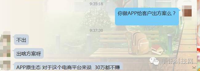 当你问了好多家发现有一家特别的“划算”,你说多少钱,他都说可以做,那绝对不会是原生态开发!如果不想开发半天结果开发出一个根本上不了线的应用,就一定要擦亮眼睛。尤其别信什么“问了十几家这家最便宜”,遇到价格没底线的开发公司,趁早跟他说再见。